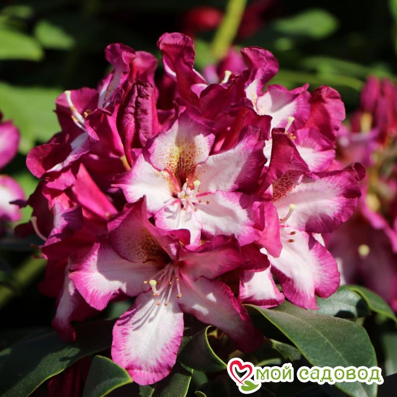 Рододендрон Миднайт мистик – великолепный гибридный сорт, оправдывающий свое название. С английского его можно перевести как «мистическая полночь». Крупные бледно-лиловые цветки украшены широким пурпурно фиолетовым кантом. Один лепесток отмечен ярким бронзовым пятном с россыпью малиновых брызг.